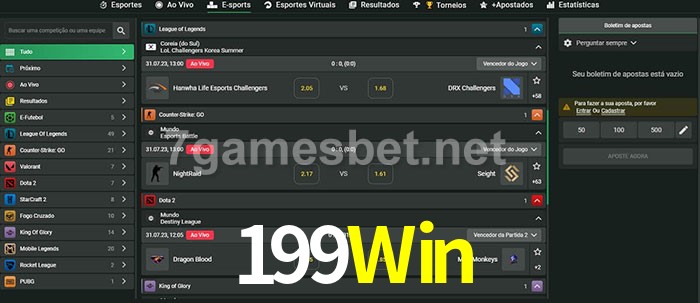 A aposta 199Win oferece aos jogadores a experiência mais conveniente de apostas em eSports!
